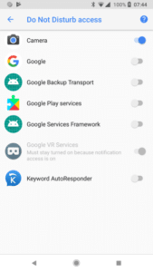 In order to set silent mode (turn off ringer and /or vibration) when autoresponder is running an app need access to “Do Not Disturb” feature